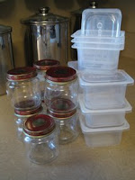 I don’t know if your town is like mine, but they only take 1’s and 2’s. I’m talking about recyclable plastic containers. For some reason, they only accept the ones that have the numbers 1 and 2 on the bottoms. I’m sure there’s a good reason, but I don’t know what it is. They also don’t accept any cardboard with a foil coating. So whenever I come across an item that I use a lot and it’s not recyclable, I think of ways I can reuse them instead of throwing them away. Two such items in my household these days are the small lidded containers that my son’s baby food comes in and the foil coated cardboard cans that my son’s baby formula comes in. I’ve been setting these aside for a few weeks now and needed to find a use for them.